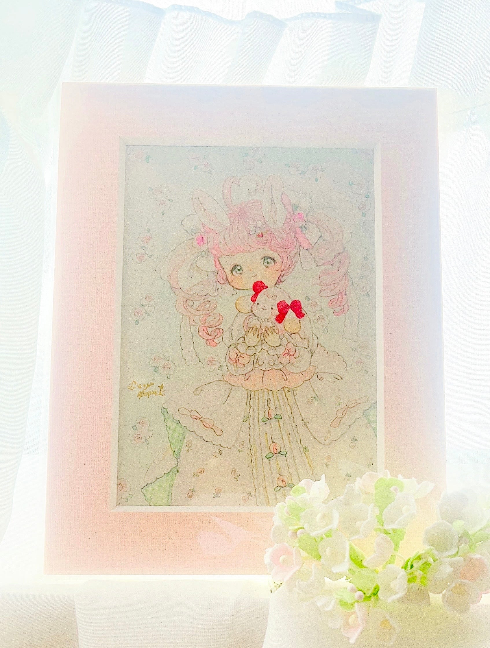 うさぎのおひめさまは人に変身した時、ピンクのツインテールにふわふわのベールを纏います✩.*˚